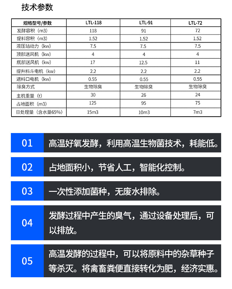 智能好氧發酵環保設備是專業處理畜禽糞便、廚餘(yú)垃圾、生活汙泥等有機廢棄物的(de)成套(tào)設備。通過高溫好氧發(fā)酵,利用微生物的活性,對廢棄物中的有機質進行生物分解、腐熟,使有(yǒu)機廢棄物轉化(huà)成(chéng)有機肥料,用於土壤改良、園林綠化,實現有機廢棄物資源(yuán)利(lì)用。 特點: 1、高溫好氧發酵,利用高溫生物菌技術,耗能低,運(yùn)行成本低。 2、占地麵積小,節省人工,智能化控製,操(cāo)作便捷。 3、發酵在密閉的(de)罐體內,罐體有保溫層,極大的減少熱量損失,提(tí)高發酵效率,主體采用不鏽鋼(gāng)材質(zhì),減(jiǎn)少腐蝕,使用壽命長。 4、一次(cì)性添(tiān)加菌種,無廢水排出。 5、發酵過程中產生(shēng)的臭氣,通過設備處理後,可以(yǐ)達標排放,不產生二次汙(wū)染。 6、高溫發酵的過程中,可以將原料中的病原菌、雜草種子等殺(shā)滅。將畜禽糞便直(zhí)接轉化為有機肥,經濟實惠。