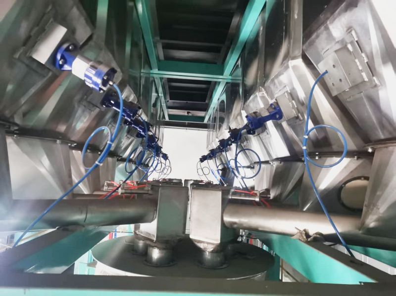 6、每個料箱頂部裝有袋式吸風管,裝料時避免粉塵飛揚,裝(zhuāng)料完畢,物料回落料箱內。