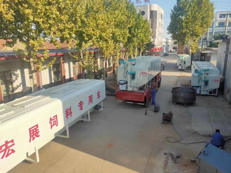 散(sàn)裝飼(sì)料罐(guàn)直接安(ān)裝在貨運車上,車、罐分體式組成。